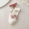 Krótkie damskie skarpetki letnie z Misiem Truskawkowym - Modne, Cienkie, Antypoślizgowe, Deodorantowe skarpetki typu boat