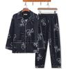Duży Rozmiar Ciepła Bielizna Nocna na Zimę Piżama Męska z Długim Rękawem Młodzieżowa Odzież Domowa Zestaw 2-częściowy Kreskówkowy Miś Czarny Szary Niebieski Casual