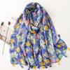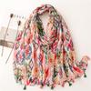 Bawełniano-lniany szal Bali Yarn: Świeży Jednolity Kolor, Liście w Kolorze Owocowej Zieleni i Jaskrawej Żółci z Detalem Chwosta