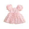 Dziecięca sukienka księżniczki dla małych dziewczynek, krótki bufiasty rękaw 3D motylkowa tiulowa sukienka o linii A