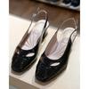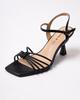 Krula 19453 36 sandały na obcasie z siateczki czarne skórzane