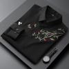 Męska koszula biała slim fit z chińskim haftem, z długim rękawem - Jesień 2023, Casualowa i niegniotliwa