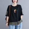 Bluzki Damskie Bawełniane Letnie Duży Rozmiar T-shirt Dwuwarstwowy z Dekoltem Polo Luźny z Nadrukiem Casualowy Pulower Top