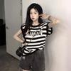 Backless Striped Short-sleeved T-shirt for Women's Summer New Design Short Student Strap Top