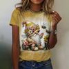Damski T-shirt na lato z nadrukiem kreskówkowym, casualowy z krótkim rękawem, T-shirt z królikiem, damski z dekoltem w serek, odzież oversize, modny pulower
