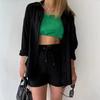 Damskie Letnie Szorty Zestaw Biała Długa Koszula Spodnie Z Wysokim Stanem Zestawy Swobodny Strój Streetwear Garnitury Dla Kobiet Odzież Damska 2025
