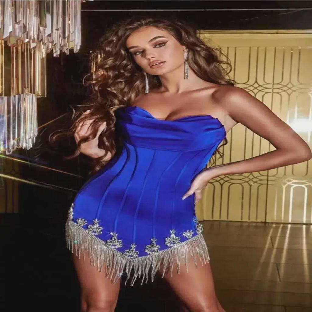 2025 Knitted Tube Top & Tassel Chain Pleated Layer Dress