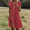 Letnia artystyczna sukienka etniczna z okrągłym dekoltem i średnią długością