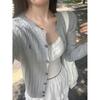 Damski Kardigan Dzianinowy z Retro Haftem - Modna Krótka Kurtka Twist na Wczesną Jesień 2023
