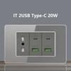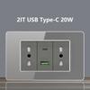 Italy Chile Socket with USB Smart Type-c 20W Fast Charging Glass Wall Electric Light Switch,Thai US Brazil Dual USB Power Socket