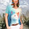 Summer Women Fashion V-Neck T-shirt Casual Cartoon Cat Tops Tees Female Colorful Short Sleeve Clothing Ladies Vintage Streetwear
