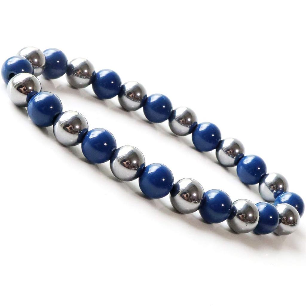 Bransoletka z rudy terahercowej Hokutolite Blue Blue 8mm Kamień mocy dalekiej podczerwieni Obwód wewnętrzny [ZŁOTY KAMIEŃ] Ok.. 19,5 cm