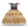 Dziewczyny ubierają sukienki Tutu Puff z krótkim rękawem muszka ślubny kostium na fortepian wydajność haftowana spódnica dla dziewczynek tkanina sukienka dla dziewczynki z kwiatami