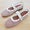 Buty z okrągłym łbem i siateczką z paskiem na klamrę dla kobiet, płaskie buty, buty z siateczki, wydrążone pojedyncze buty, buty z siatki rybackiej