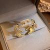 Złoty galwanizowany cyrkonowy kokardkowy otwarty pierścionek - koreański design luksusowej biżuterii