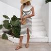 Women's Dating Commuter Casual Simple Split Kink Striped Hip Wrap Dress