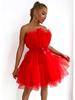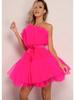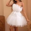 WT2025 Elegancka sukienka z siateczki i tiulu z kokardą