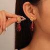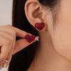Retro Kolczyki Sztyfty z Czerwonym Sercem i Kwiatem Geometryczne Srebrne Igły - Prosty, Ekskluzywny Dodatek Jesienno-Zimowy dla Kobiet