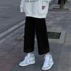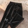 Damskie jeansy z wysokim stanem, czarne, z haftem kokardki Love - Nowy styl wiosenno-jesienny z prostymi, luźnymi szerokimi nogawkami