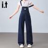 Damskie dżinsowe ogrodniczki wyszczuplające: Nowy jesienny styl, odmładzający, luźny, z szerokimi nogawkami, długi do podłogi, duży rozmiar.