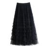 Damska 2025 Nowy Styl Czarna Siateczkowa Warstwowa Długa Bufiasta Spódnica