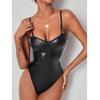 2024 Autumn/Winter Slimming Sexy Suspenders Jumpsuit with PU Splicing - Women's Vest Style