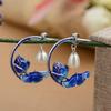 Kolczyki z emalią cloisonne z lotosu, porcelanowe rzemiosło, perłowe, w stylu chińskim, retro, unikalne, lekki luksusowy urok, damska biżuteria