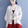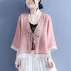 Cardigan Embroidered Stitching Shirt Women's Summer Three-quarter Sleeve Disc Buckle Wrapped Cotton and Linen Blouse