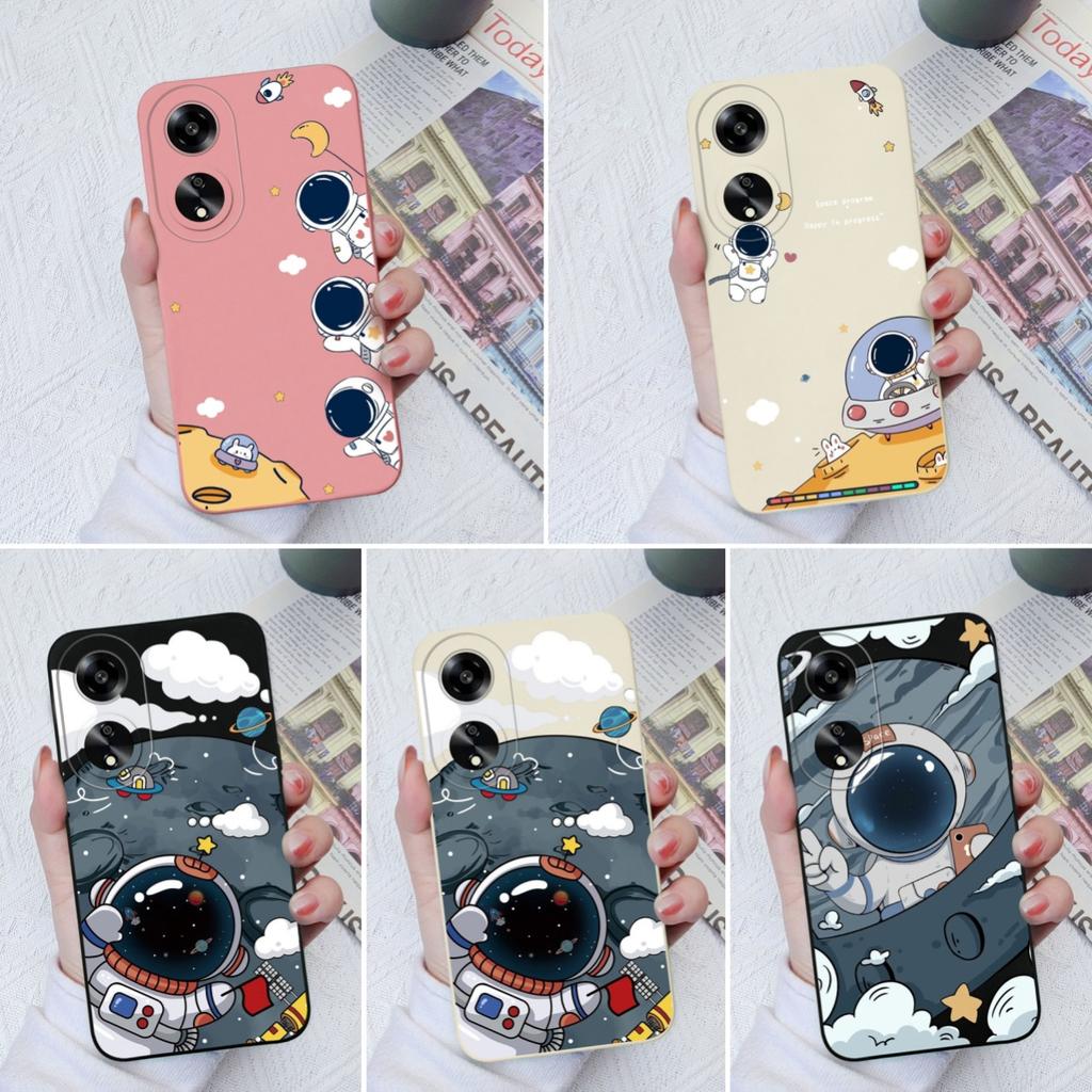 Dla Oppo A11 A1K A7 A15 A35 A52 A55 A1 Etui na telefon Tylna okładka Wzór uroczego kreskówkowego astronauty Miękki płynny silikon Odporny na upadki Pokrowiec dla Oppo Bumper Capa