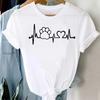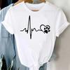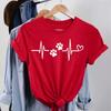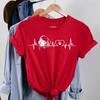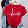 Women Unisex T Shirt Fashion Dog Heartbeat Print T-shirt Funny 90s Print T Tee Womens Tshirt for Female Red Shirt Clothes Tops