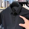[Wyróżniająca się trójwymiarowa tkanina żakardowa] Koszulka polo z krótkim rękawem z klapą z lodowego jedwabiu męska gładka koszulka top