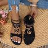 Damskie sandały Bohemian Flat, okrągłe czubki, buty plażowe z koralikami i kwiatami