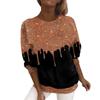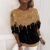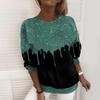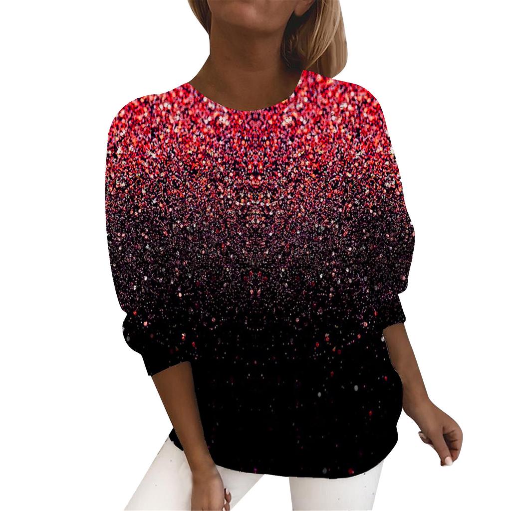 Modne Casualowe Damskie T-shirty z Okrągłym Dekoltem i Błyszczącym Nadrukiem 3D z Długim Rękawem