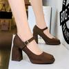 Retro Wysoki Obcas Gruby Obcas Wodoodporna Platforma Zamsz Płytki Dekolt Kwadratowy Nosek Klamra Paska Jednopaskowe Pojedyncze Buty Dla Kobiet