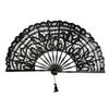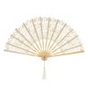 Bawełniany wachlarz ręczny, koronkowy wachlarz składany, wachlarz bambusowy w stylu vintage do tańca liniowego, na imprezy i wydarzenia
