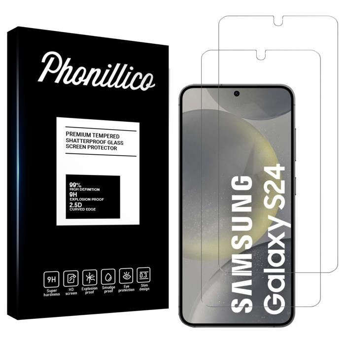Film de Protection Écran - Phonillico® - Samsung Galaxy S24 - Pack de 2 - Verre Trempé - Résistant aux rayures