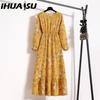 IHUASU 25 Kolorów Wiosenne Damskie Sukienki Maxi Casual z Długim Rękawem z Kwiatowym Nadrukiem z Dekoltem O Długie Sukienki Damskie Bohe Sukienka Muzułmańska na Imprezę Plażową