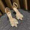 Sandals women's summer 2024 new rhinestone hollow bow bridesmaid shoes high heels fairy pointed single shoes women's stiletto