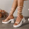 Damskie sandały z paskiem na kostce Letnia moda Kwiaty Wysokie obcasy Buty Seksowne sznurowane Sandały na platformie z grubym obcasem Sandalias De Mujer