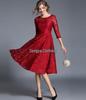 Sukienka koronkowa plus size rozkloszowana z rękawem trzy czwarte - Styl europejski i amerykański, dopasowana, na wiosnę i jesień