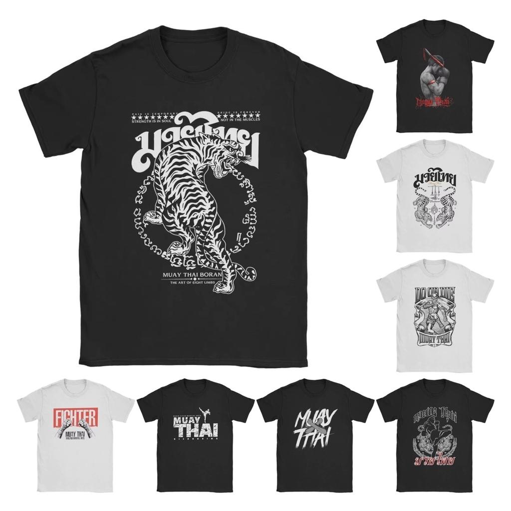 Męskie Koszulki Muay Thai Sak Yant Tygrys Unikalna 100% Bawełna Krótki Rękaw Koszulki Bokser Odzież Lato