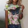 Moda Letnia 2025 Bluzka Damska T-shirty T-shirt z Motywem Motyla 3D Casualowy Top z Krótkim Rękawem Podstawowa Odzież Damska Oversize