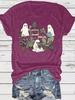 Summer Women's Halloween Ghost Flower Print Round Neck T-Shirt, Casual Fashion, Short Sleeve