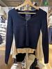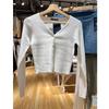 Retro Granatowy Prążkowany Kardigan z Koronkowym Kołnierzykiem dla Kobiet