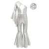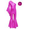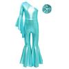 Dziewczęcy Błyszczący Strój do Tańca z Dzwonami Modny Kombinezon na Jedno Ramię z Rozszerzanym Rękawem Gumka do Włosów Ozdoba na Głowę na Występy