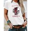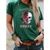 Round-neck Fashionable Skull Flower Print Top Women's T-shirt with Loose Short Sleeves