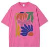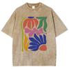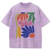 Kreskówkowy Kolorowy Nadruk Roślin Wodnych Damski T-shirt Oversize Sprany Denim Krótki Rękaw Vintage Postarzany Nisza Top