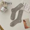 5 Pairs of Female Spring and Summer Thin Embroidery Bow Hollow Tube Stack Socks