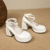 2025 spring new winding belt high heels thick heel waterproof table single shoes Japanese casual tide with Mary Jane shoes women