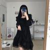 Gothic Black Lace Ruffle Dress For Girls Princess Party Ruched Fairy Grunge Long Sleeve Dresses Woman Fashion Korean